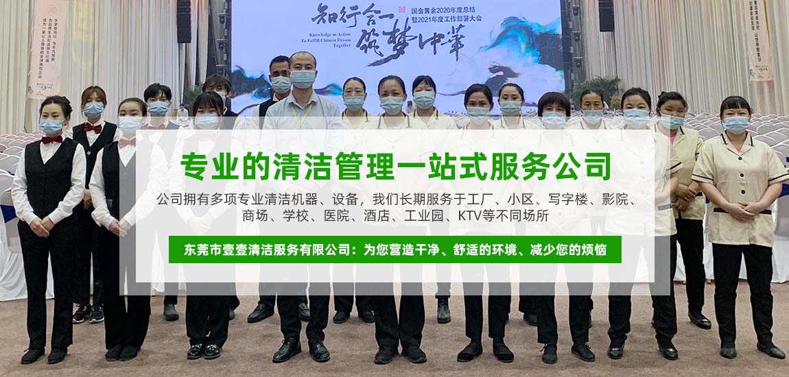 東莞市壹壹清潔服務有限公司為一家綜合性的清潔服務公司。 我們以專業(yè)的管理團隊、實力雄厚的人力資源,以及獨到的管理模式在東莞清潔保潔行業(yè)中迅速崛起。 我們以服務需求為導向,遵循清潔行業(yè)的發(fā)展規(guī)律,不斷吸引高端管理人才,引進先進的管理模式,以ISO9000質量管理體系為準則,憑借良好的技術支持和健全的售后服務為顧客營造一個滿意的工作環(huán)境而不懈努力。 我們以客戶滿意為宗旨,以高質量、高標準來服務客戶,采用高效環(huán)保的清潔藥劑及專業(yè)清潔機械(意大利、美國進口及國產)為客戶提供優(yōu)質的清潔服務。 我們經過全體員工的三年奮斗,在主管部門和國內外同行的引導及支持下,在東莞清潔保潔行業(yè)中知名度不斷提高,現(xiàn)已發(fā)展成為一家綜合性清潔服務公司。